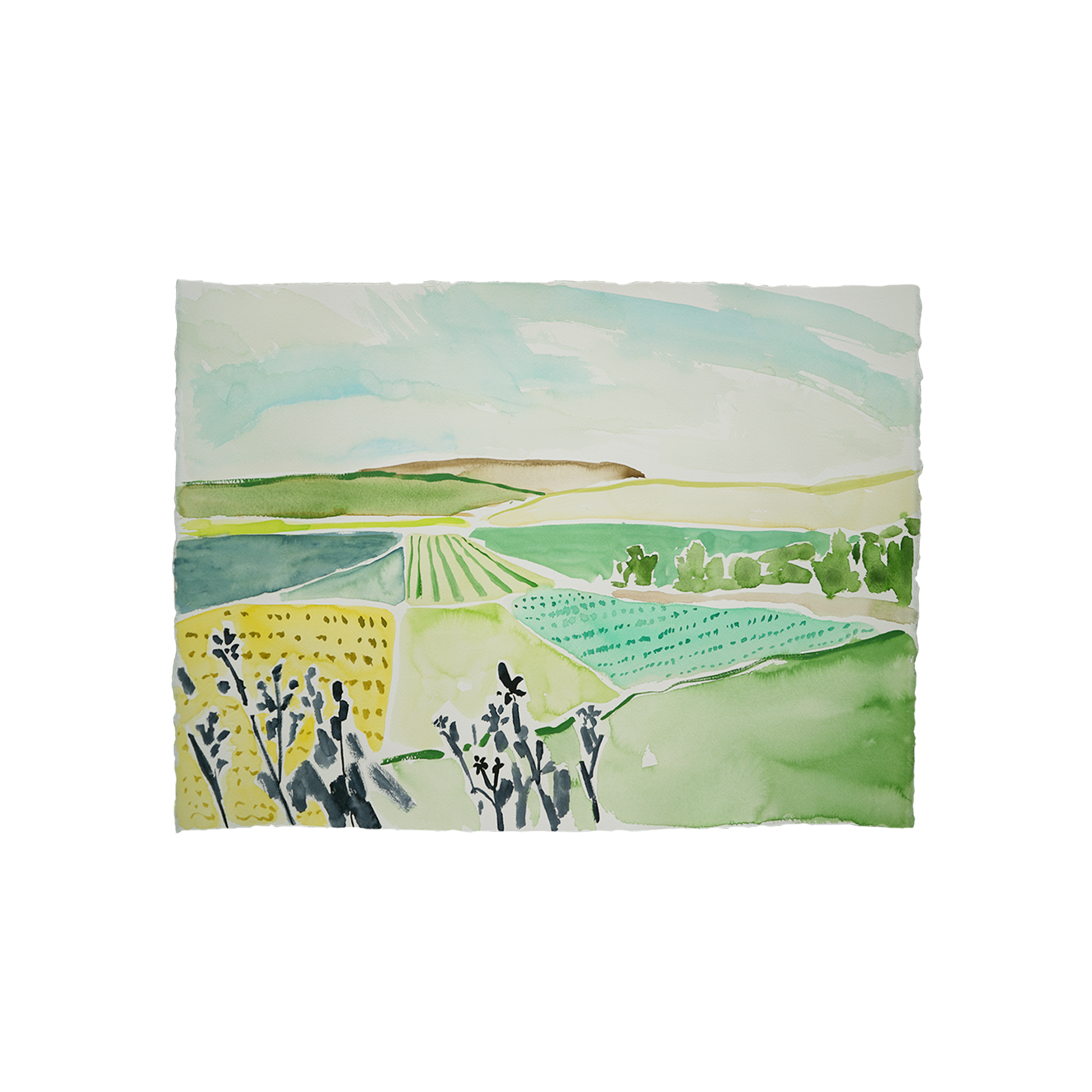 Watercolor on White Paper with an optional Natural Wood Floated Frame.