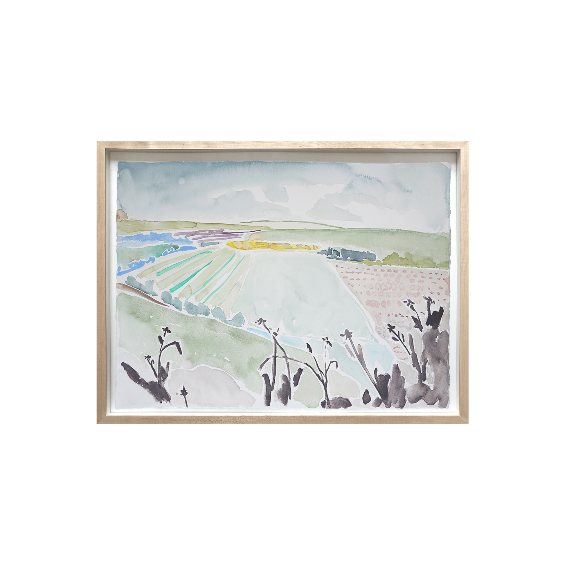 Watercolor on White Paper with an optional Natural Wood Floated Frame.