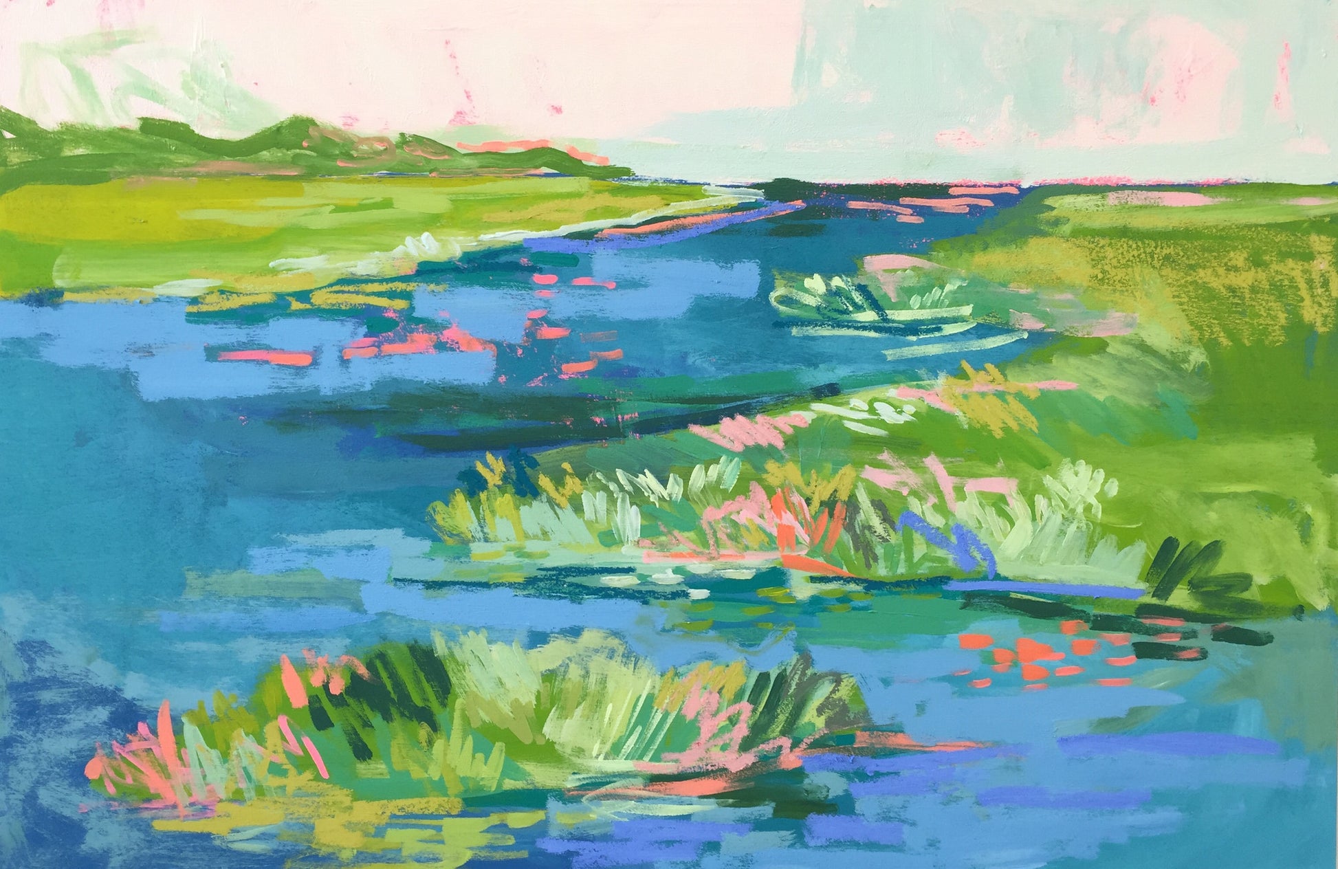 This is an original piece that is a part of my newest marsh collection. It is acrylic paint, gouache, neo-color crayon, and oil pastel on a birch wood panel. Each piece is hand signed by the artist. The sides have a two once depth and will be painted white. This painting will be shipped via UPS out of Charleston, SC within a week of placing your order.
