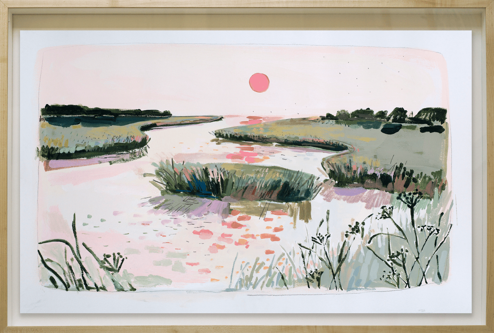 Acrylic, gouache and pastel on BFK Rives 280gsm paper with an optional Natural Wood Floater frame