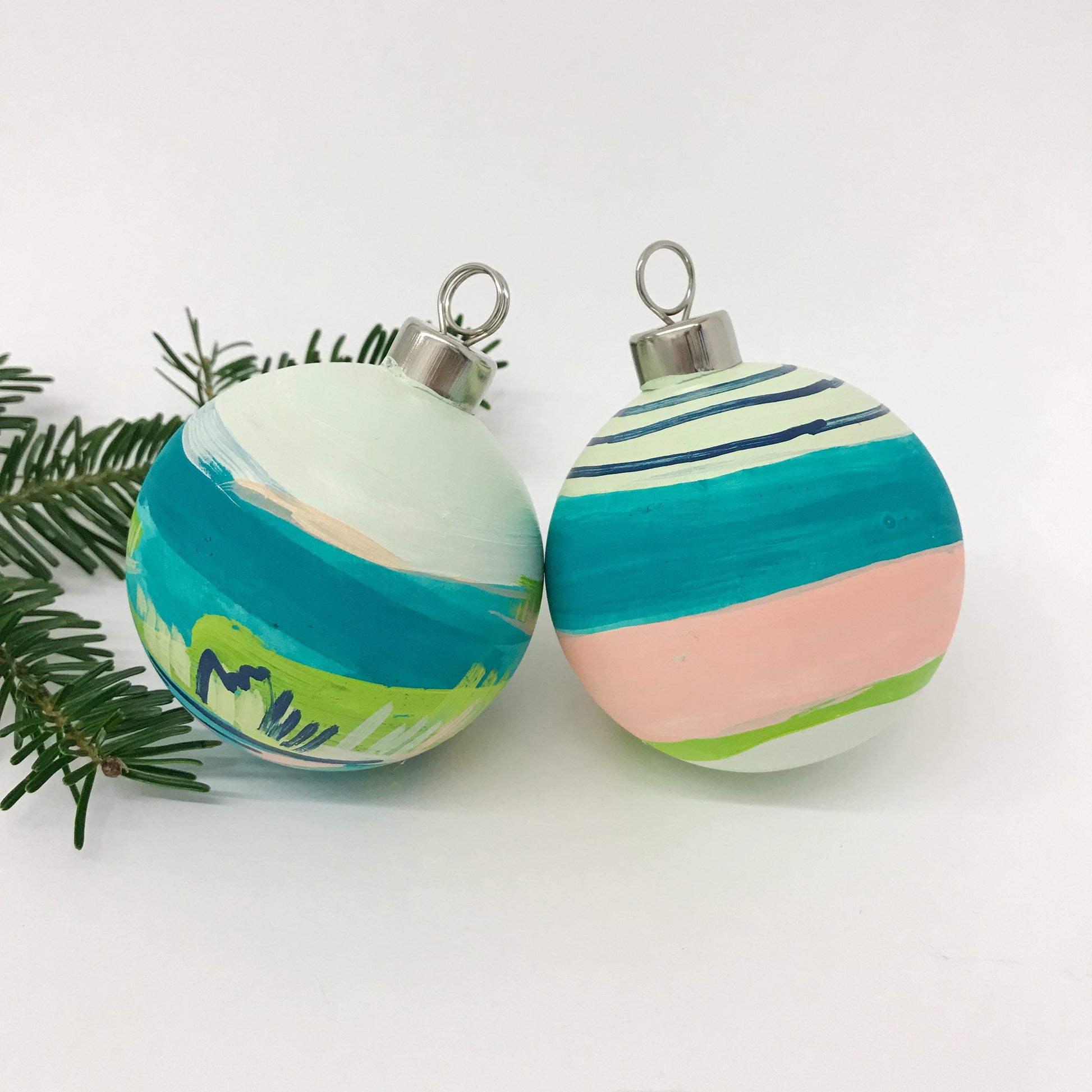 2 hand painted ornaments