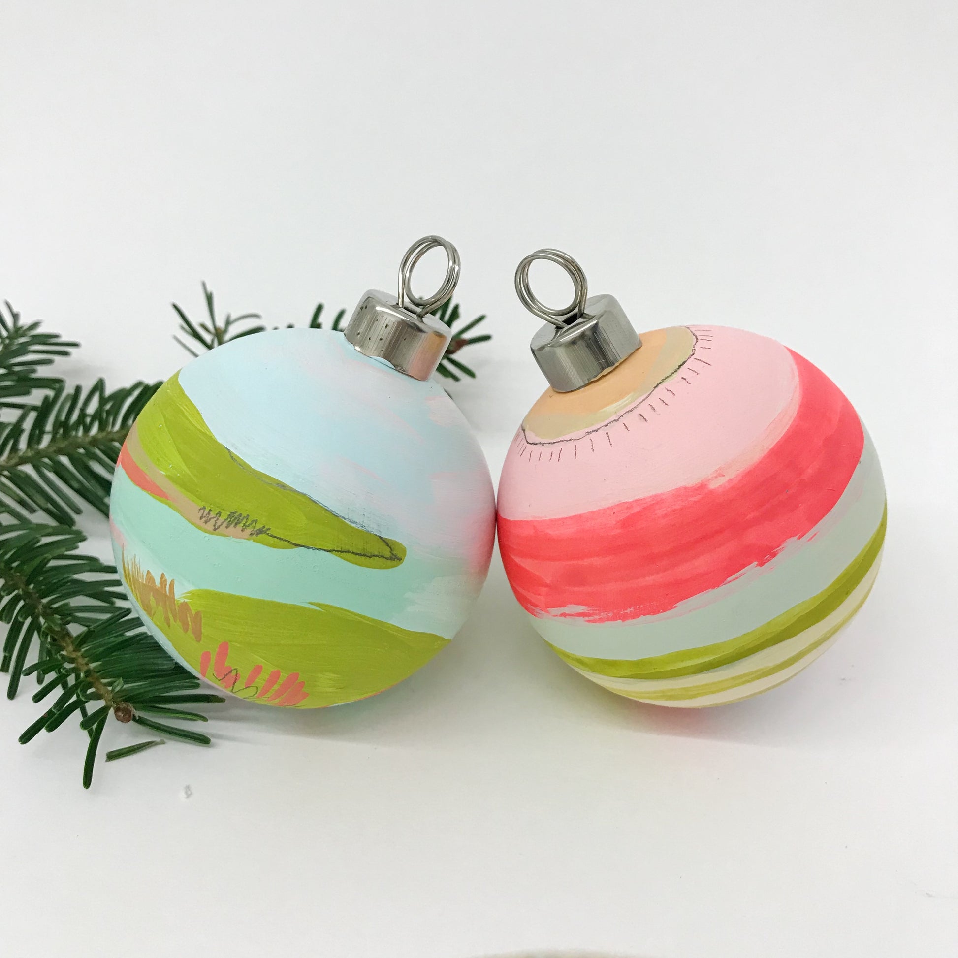 2 hand painted ornaments