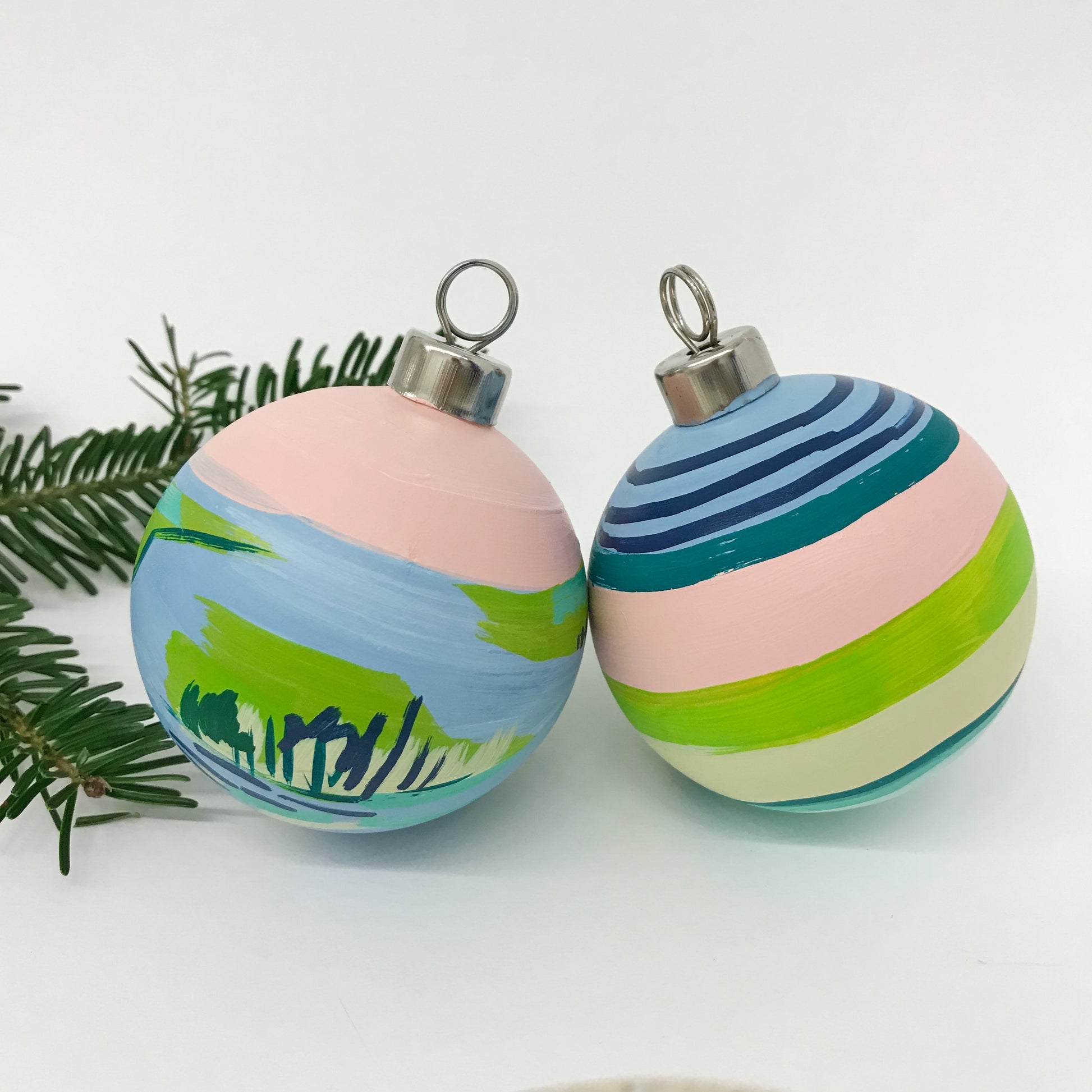 Each ornament was hand painted by Blakely. They are ceramic ornaments with a circumference of 3.5 inches, and will be tied with a velvet ribbon. The collection will be shipping from Charleston, SC via USPS. Order before Dec. 20 to recieve in time for Christmas.