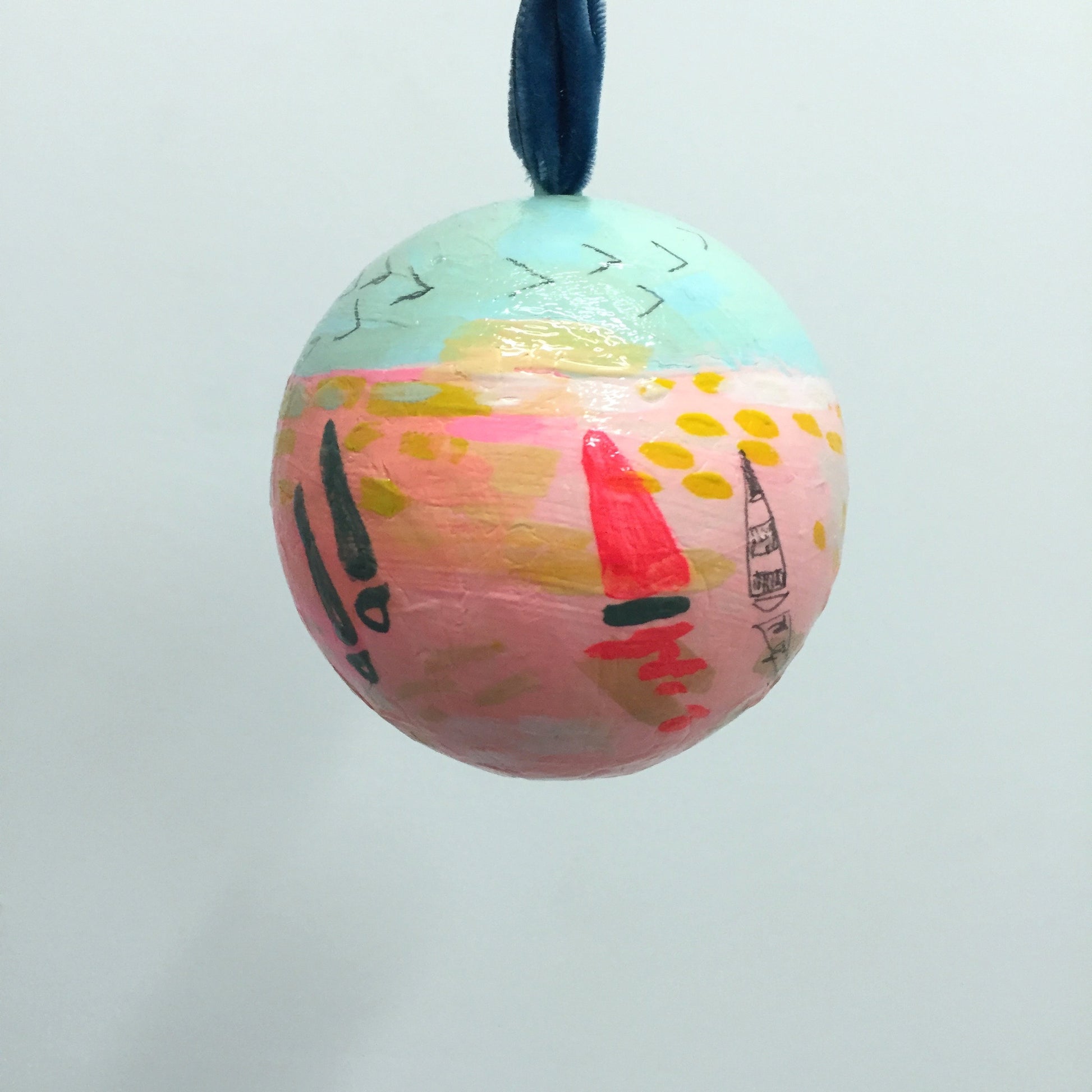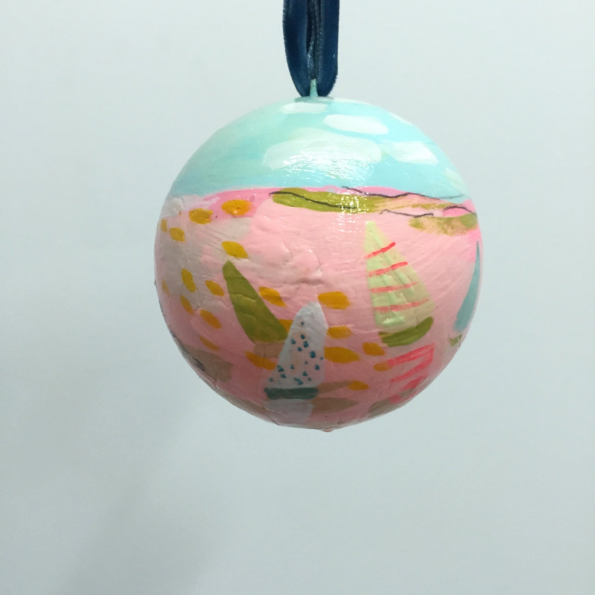 This ornament was hand painted with acrylic paint, and varnished with a glossy finish. They are made of solid wood, very shatter proof! It will be shipped from Charleston, SC.