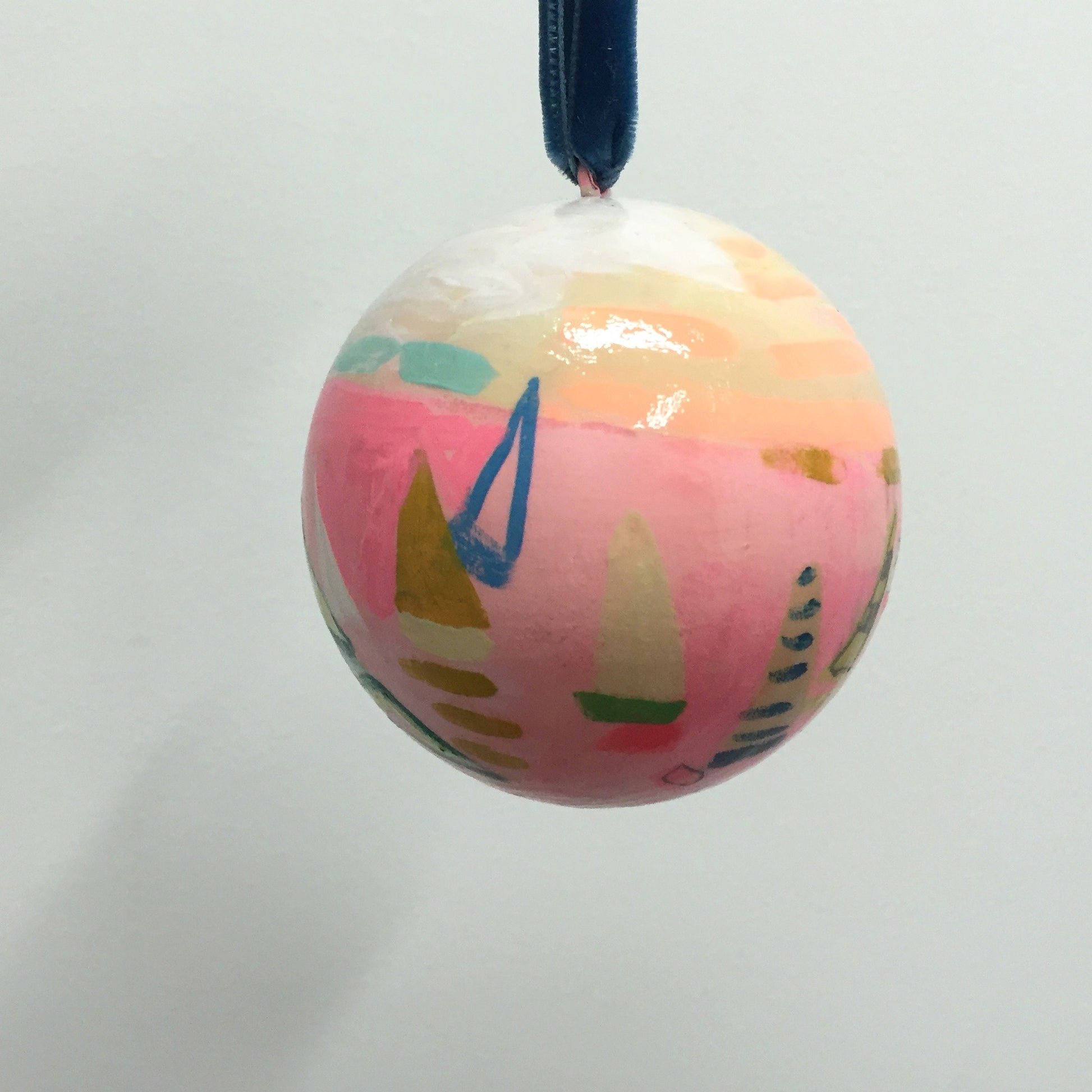 This ornament was hand painted with acrylic paint, and varnished with a glossy finish. They are made of solid wood, very shatter proof! It will be shipped from Charleston, SC.