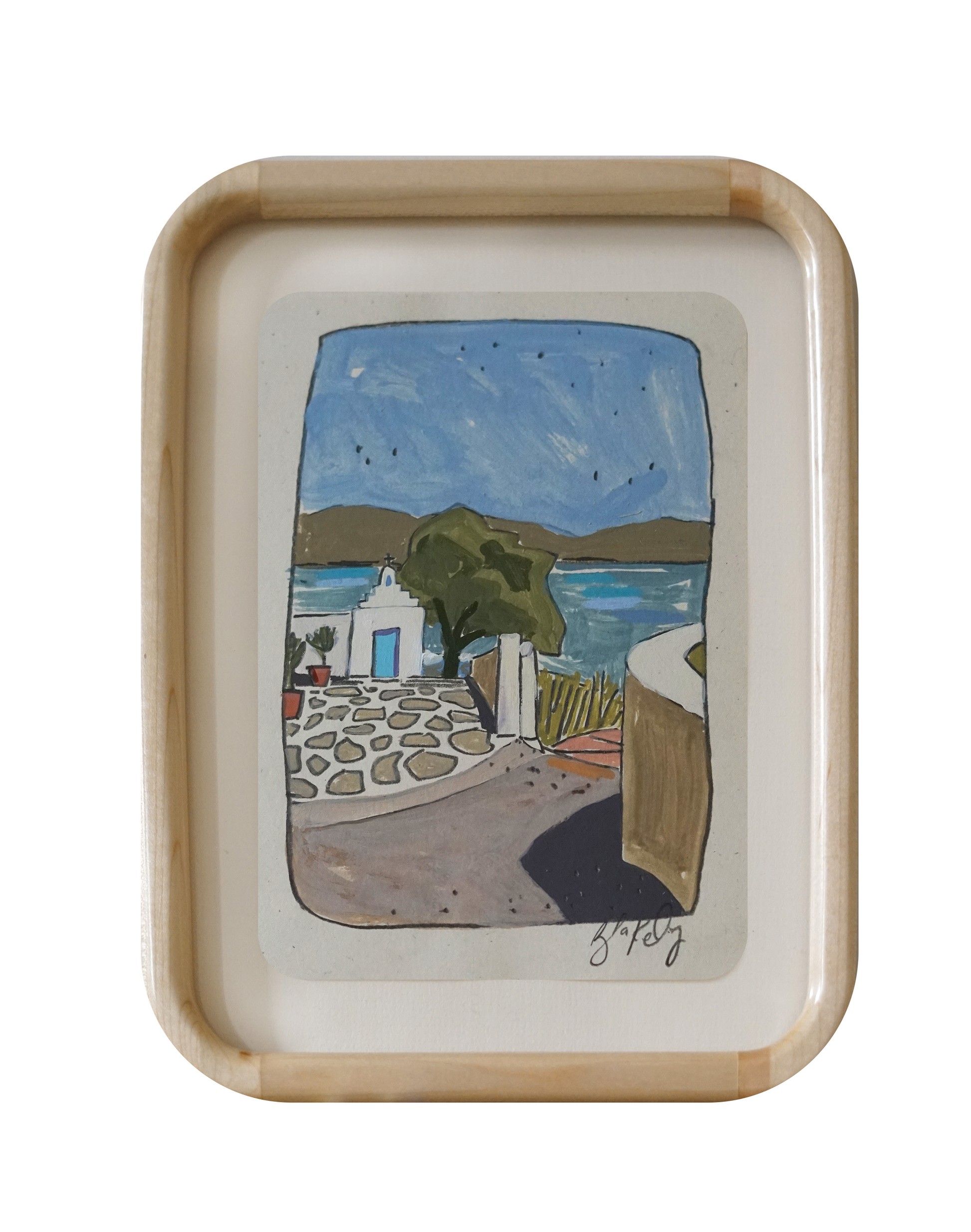 Acrylic, pencil and pastel on recycled french paper with a rounded maple wood frame