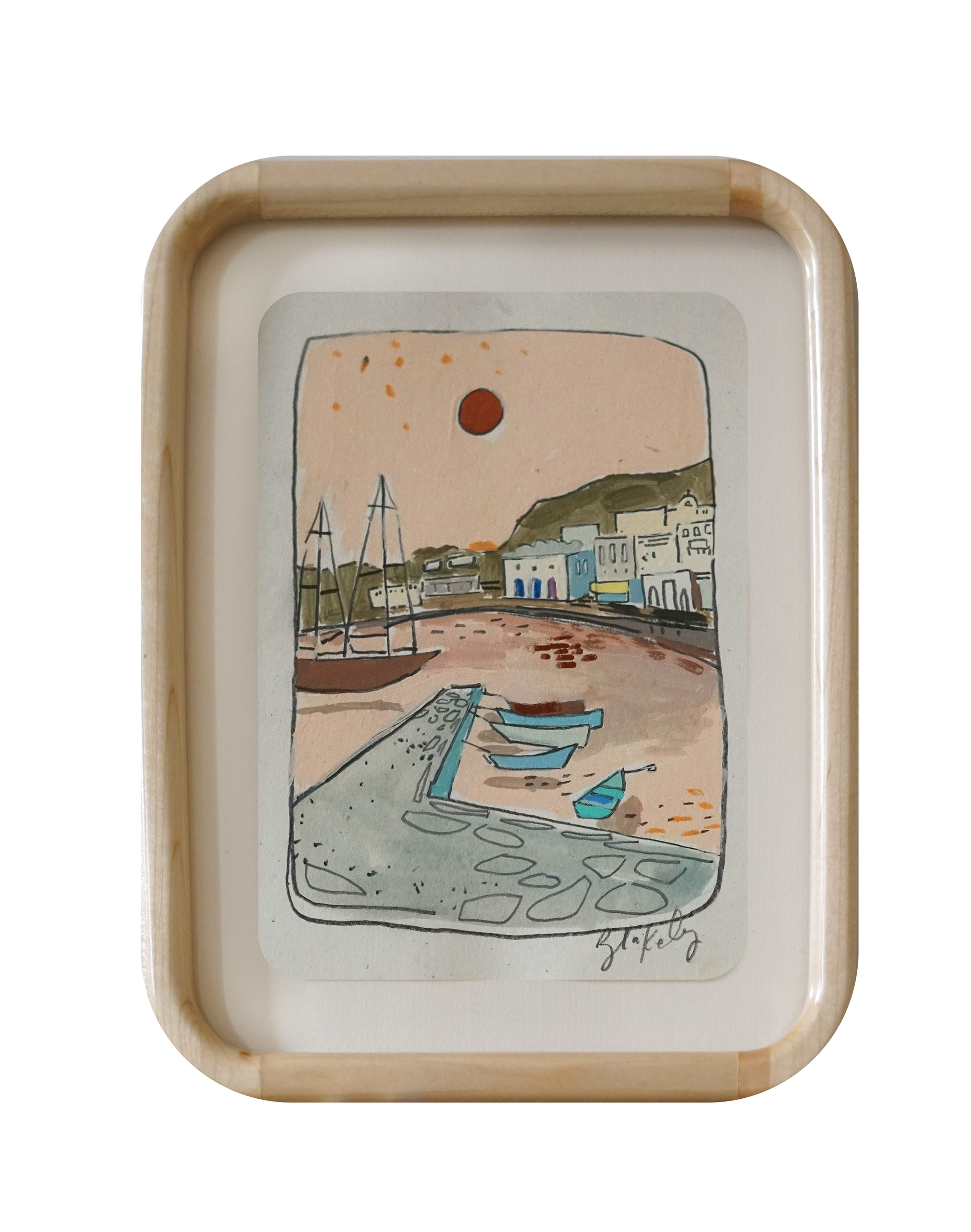 Acrylic, pencil and pastel on recycled french paper with a rounded maple wood frame
