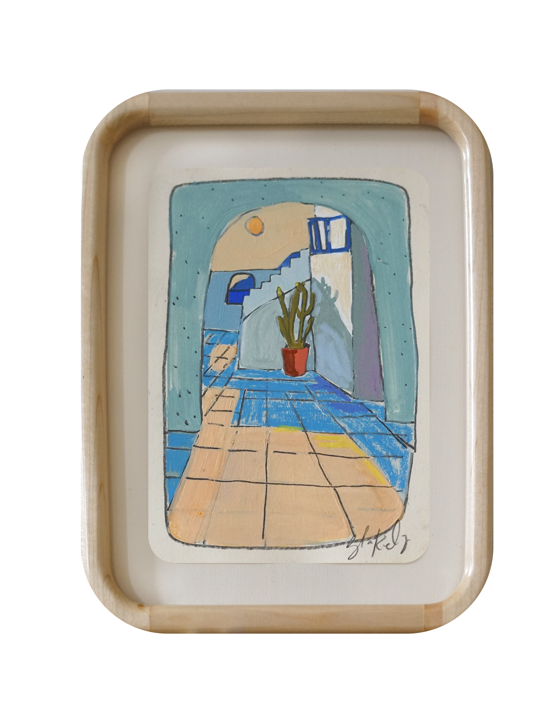 Acrylic, pencil and pastel on recycled french paper with a rounded maple wood frame