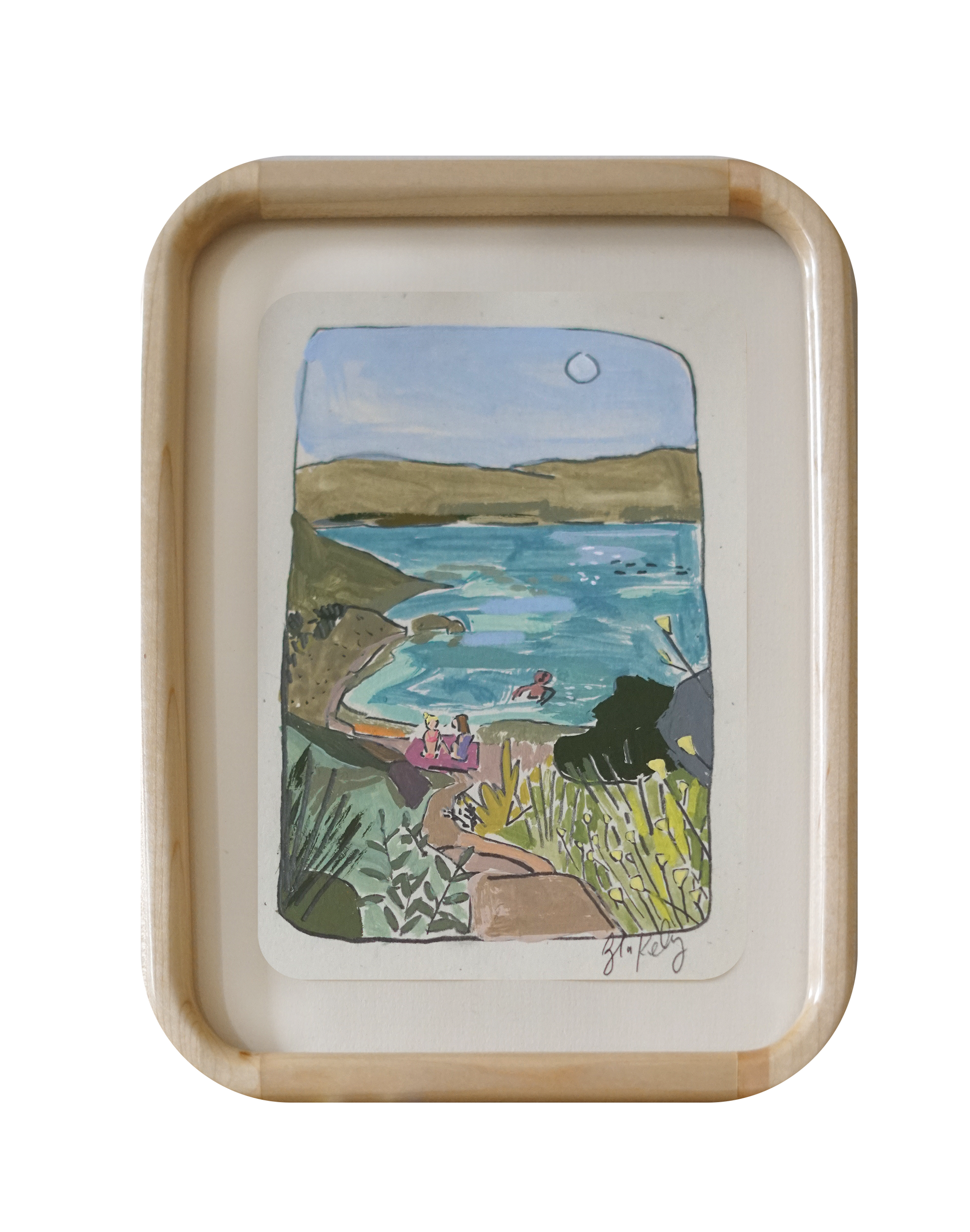 Acrylic, pencil and pastel on recycled french paper with a rounded maple wood frame