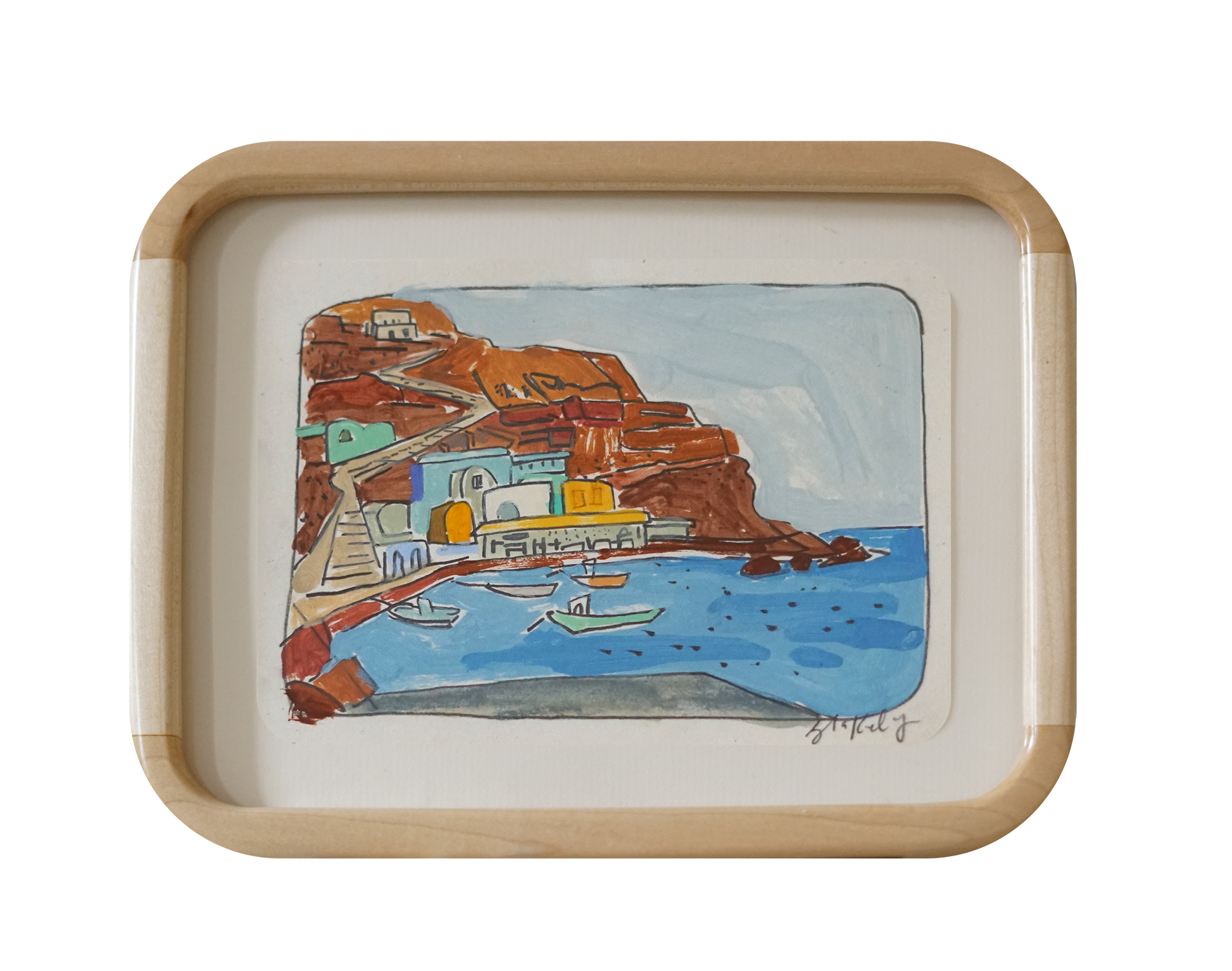 Acrylic, pencil and pastel on recycled french paper with a rounded maple wood frame