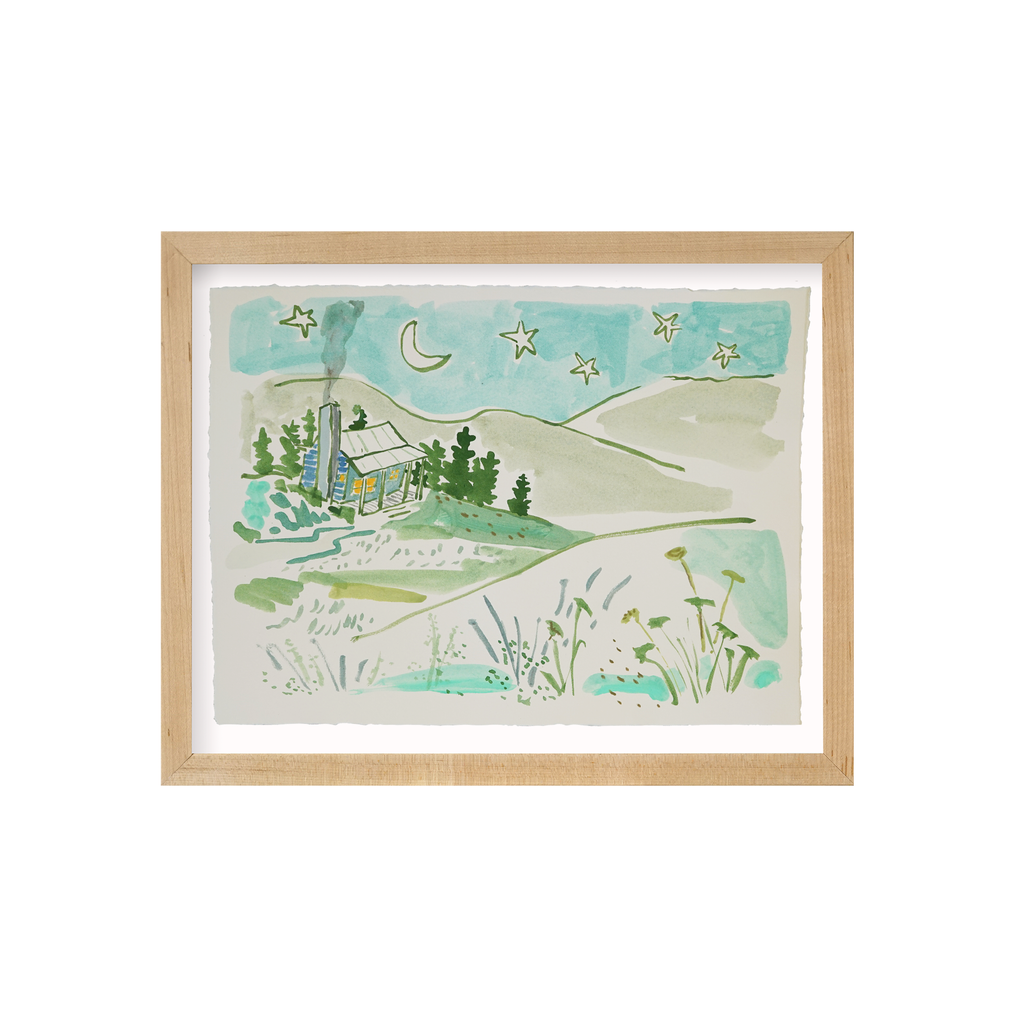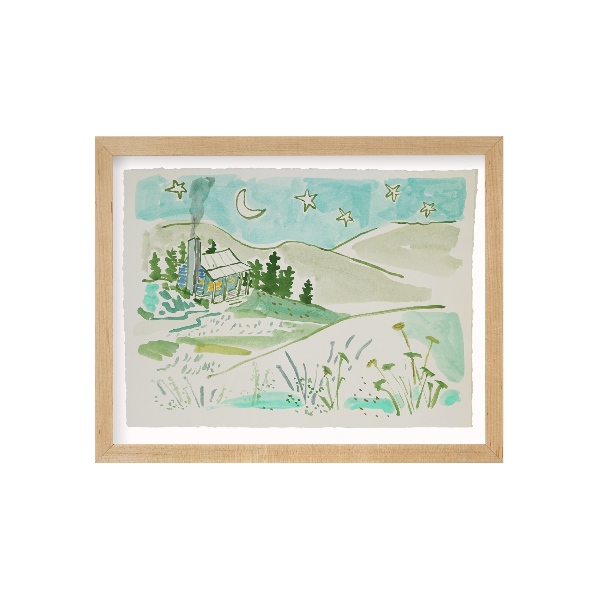 Acrylic, pencil, and wax pastel on BFK Rives 280gsm paper floated in an optional Natural Wood Floated Frame