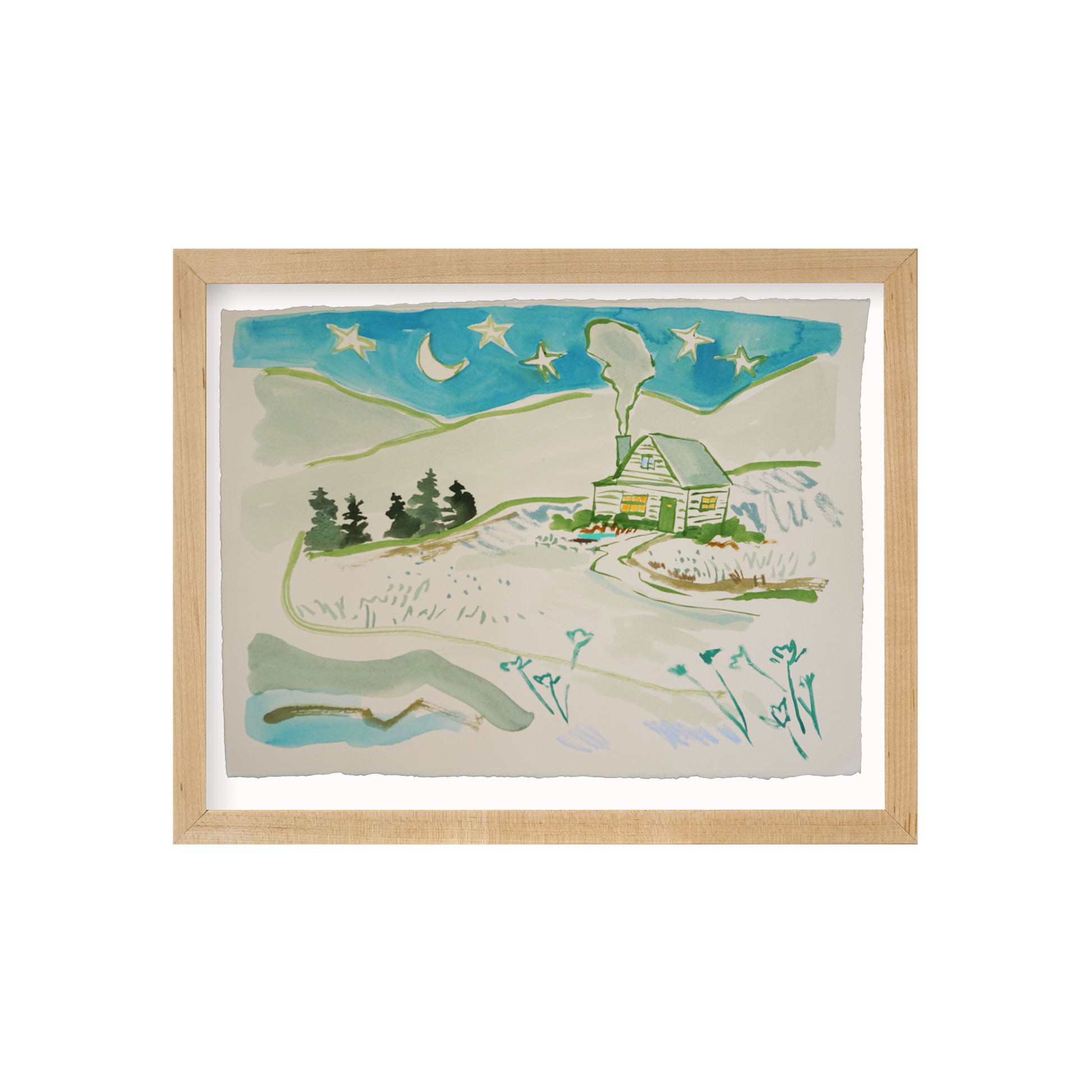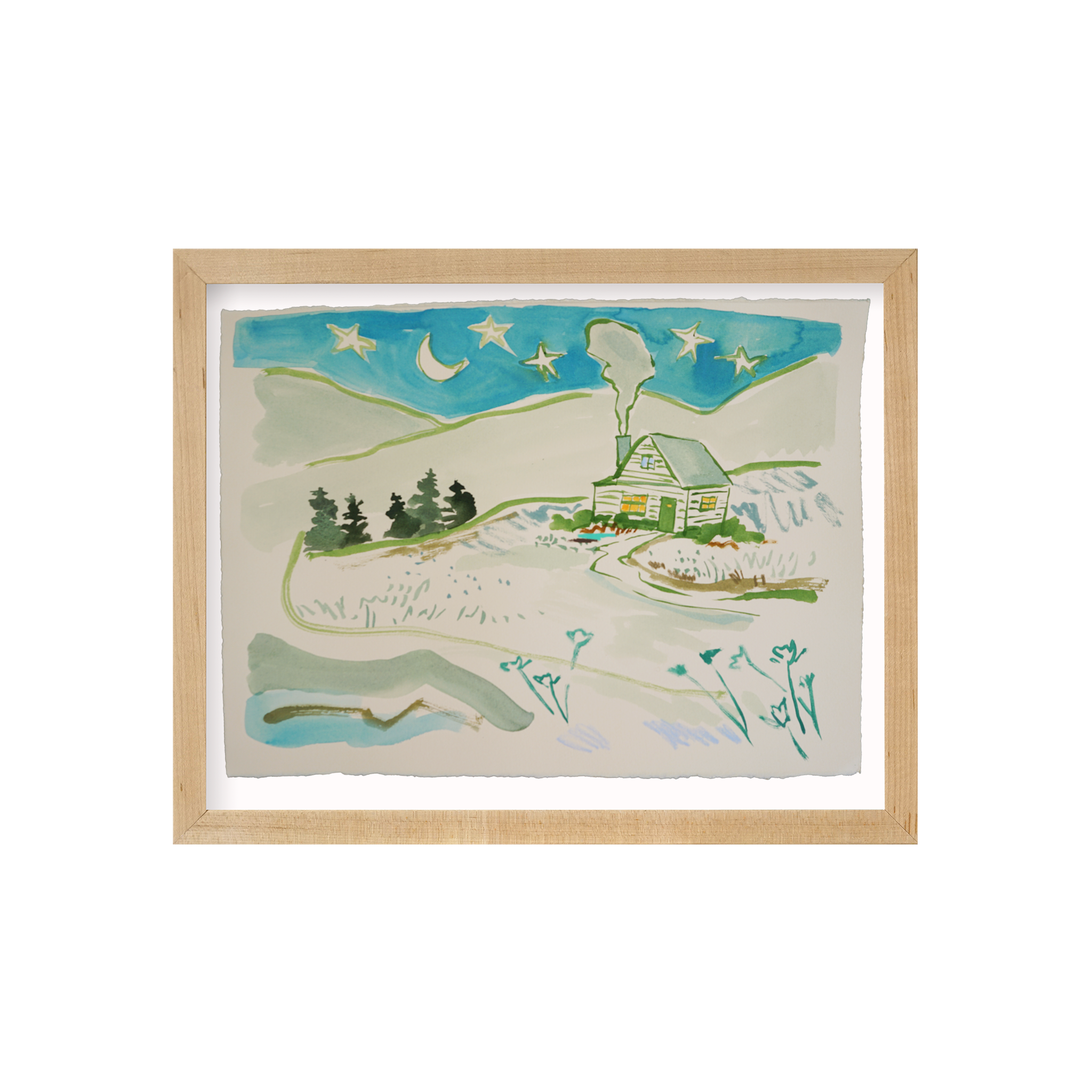 Acrylic, pencil, and wax pastel on BFK Rives 280gsm paper floated in an optional Natural Wood Floated Frame