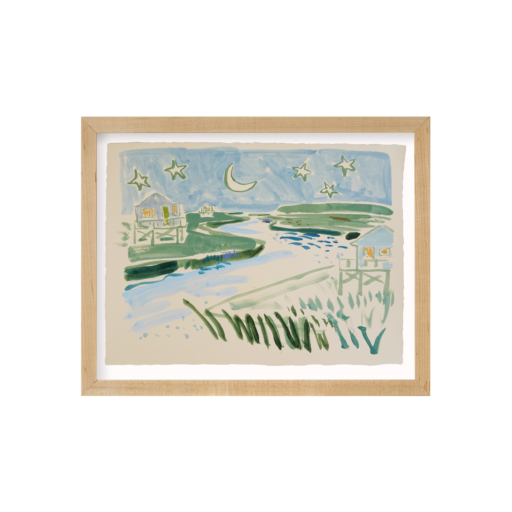 Acrylic, pencil, and wax pastel on BFK Rives 280gsm paper floated in an optional Natural Wood Floated Frame