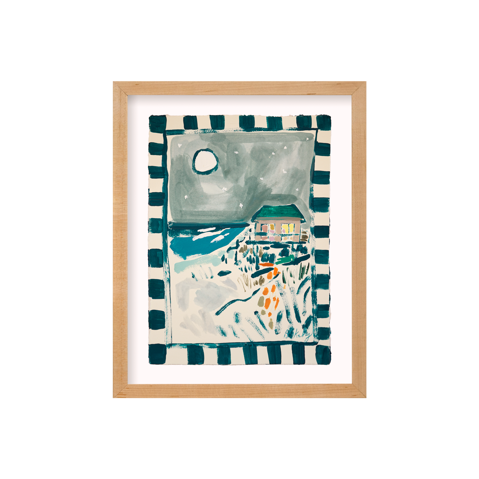 Acrylic, pencil, and wax pastel on BFK Rives 280gsm paper floated in a Natural Wood Frame with Pure White mat