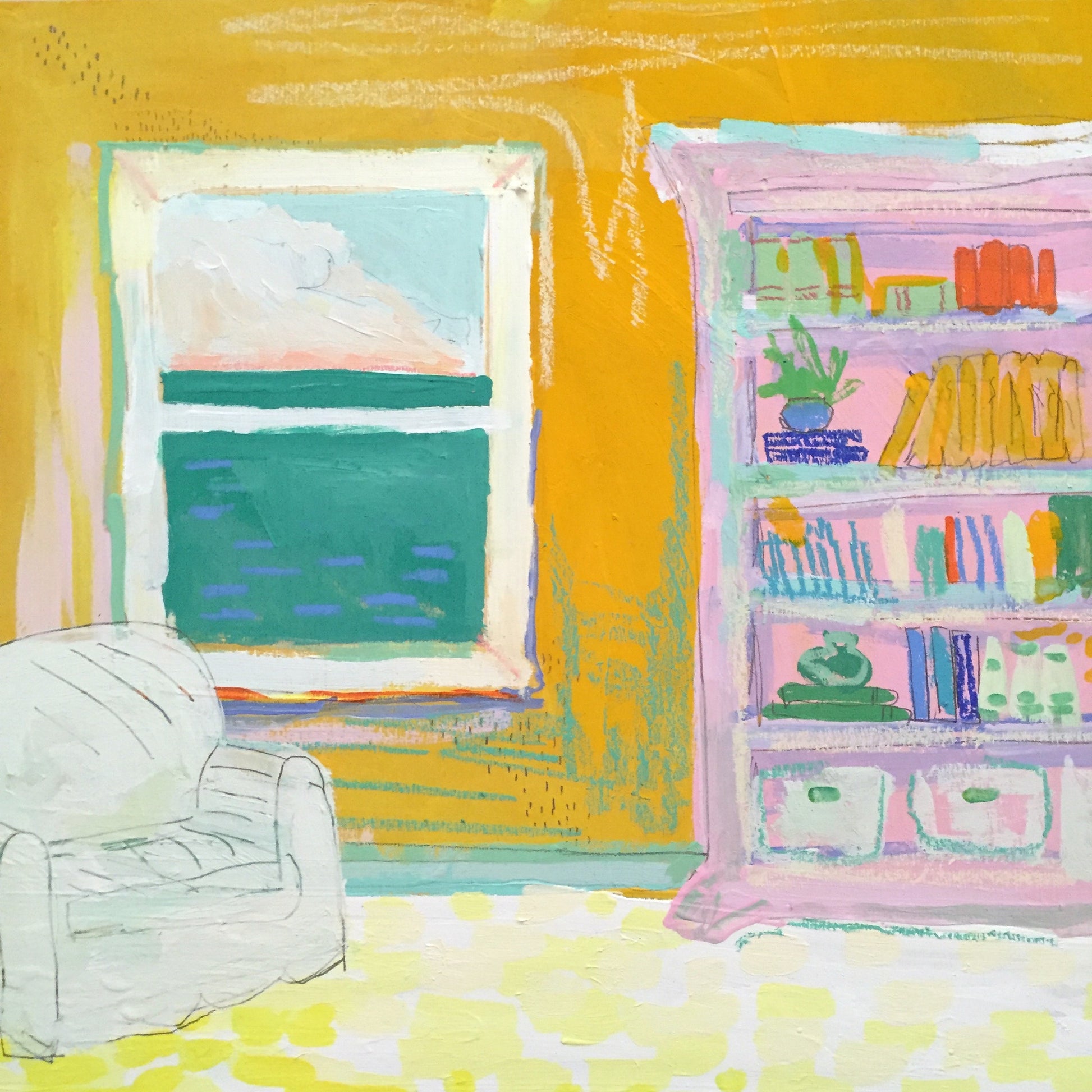 This window series is inspired by my favorite artist in the world, Matisse. I wanted to encompass his ability to use simple lines to create depth and interest. This piece is made of acrylic paint, neo color crayon, gauche, and pencil. It is done on a birch wood panel with a depth of 2 inches that will be painted white. It will be shipped from Charleston, SC.