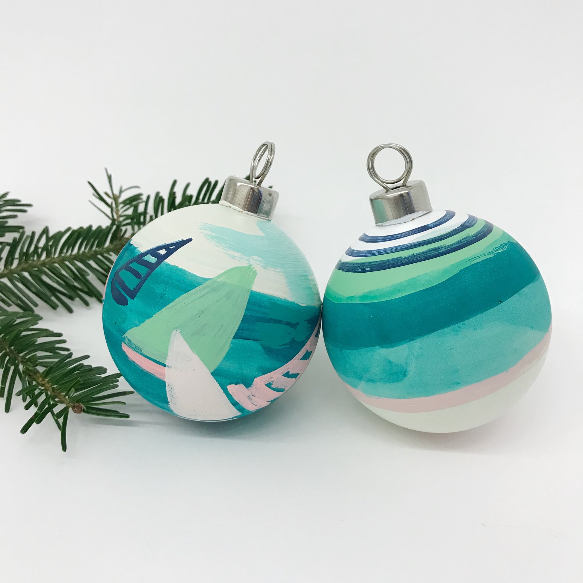 Each ornament was hand painted by Blakely. They are ceramic ornaments with a circumference of 3.5 inches, and will be tied with a velvet ribbon. The collection will be shipping from Charleston, SC via USPS. Order before Dec. 20 to recieve in time for Christmas.