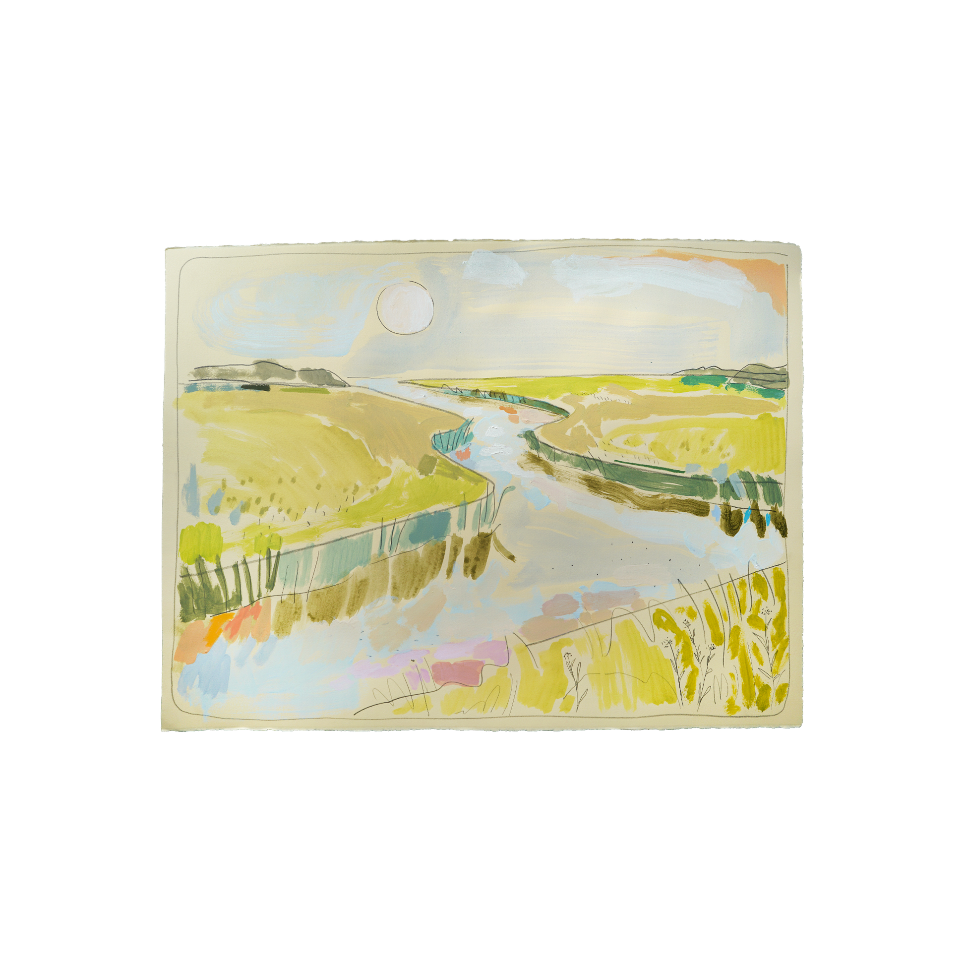 Acrylic, pencil, and wax pastel on BFK Rives 280gsm paper with an optional Natural Wood Floated frame