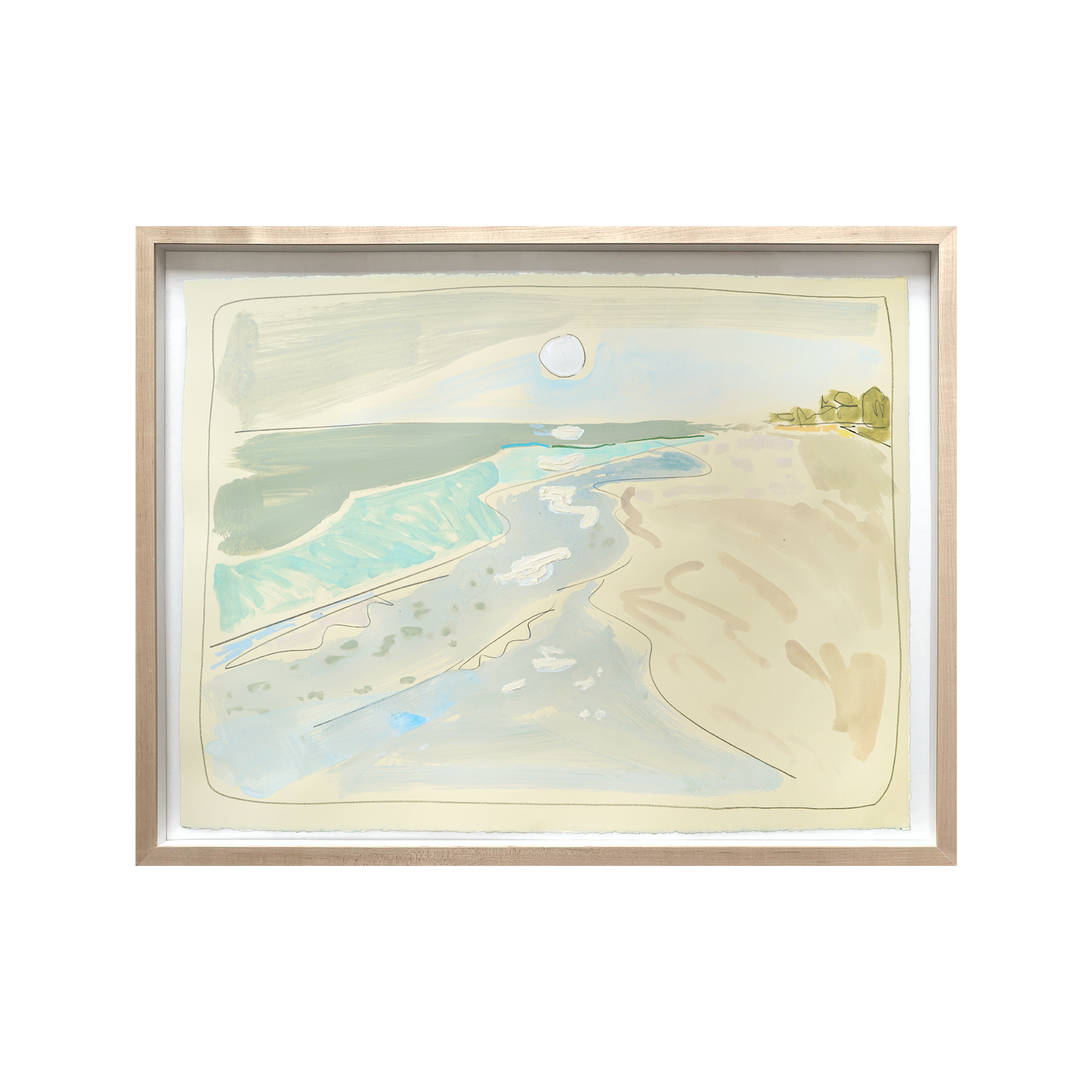Acrylic, pencil, and wax pastel on BFK Rives 280gsm paper with an optional Natural Wood Floated frame
