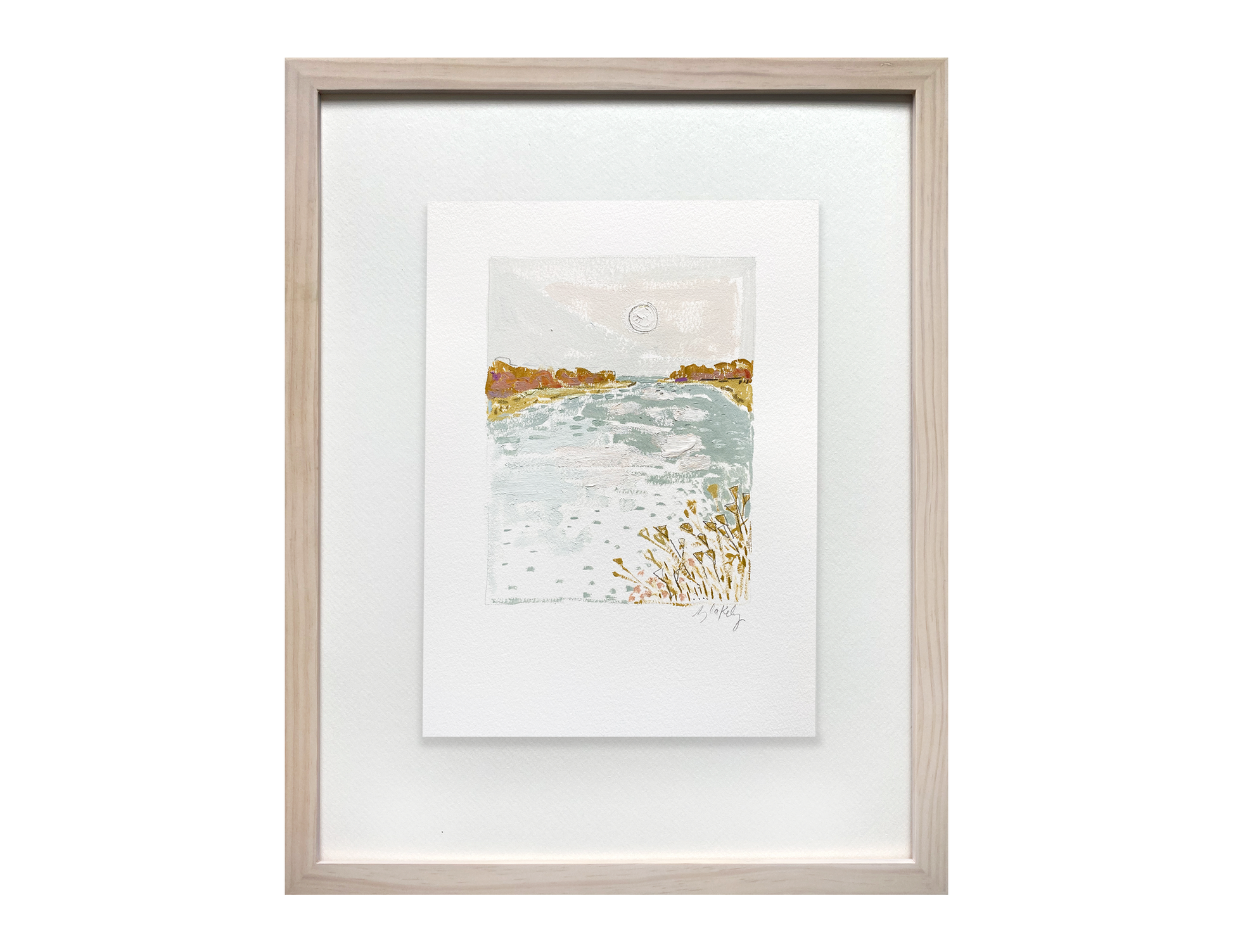 Acrylic, oil, pencil and pastel on Arches Paper with a White Wash Mat and White Wash Gallery Wood Frame