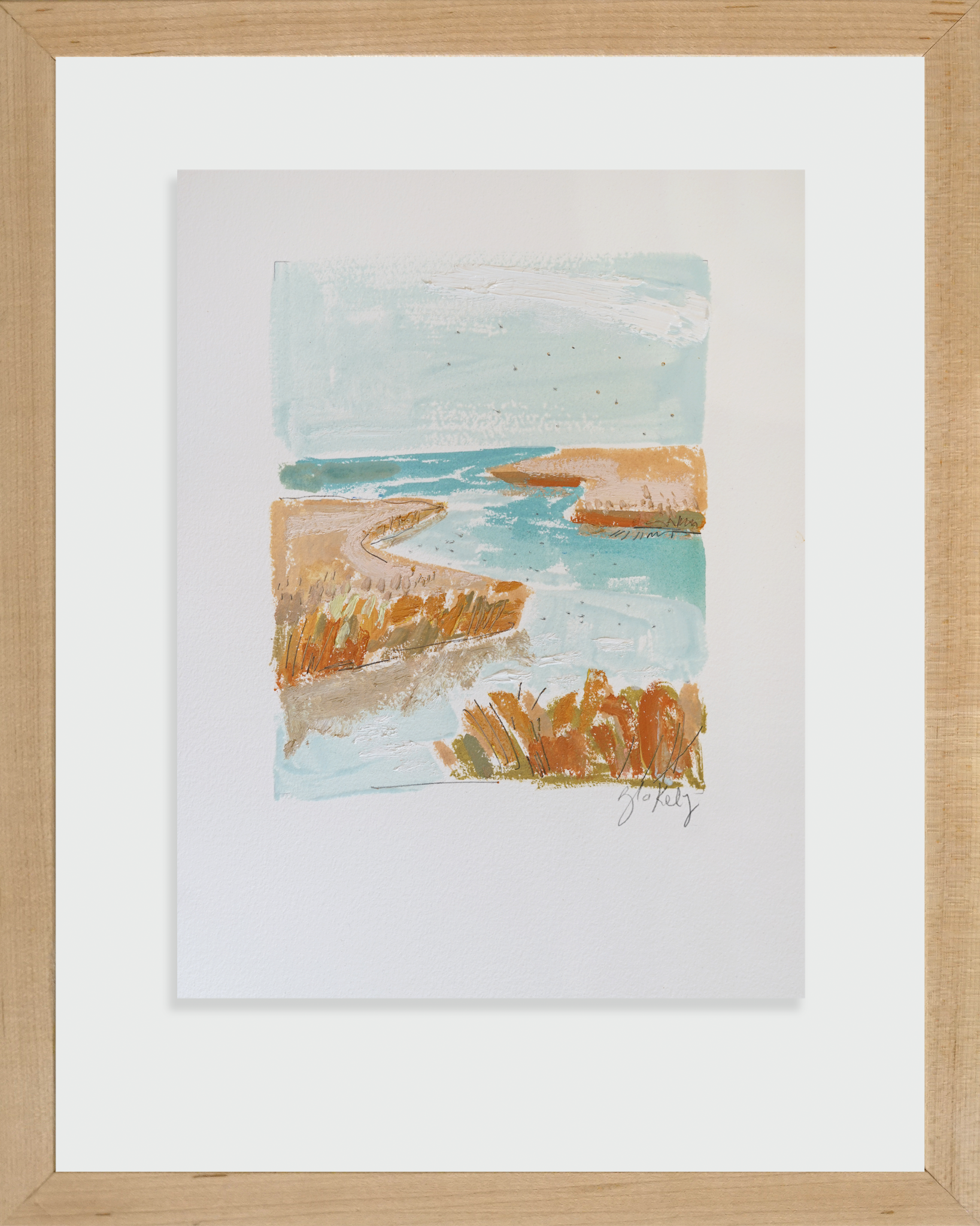 Acrylic, oil, pencil and pastel on Arches Paper with an optional White Wash Mat and Maple Wood Frame