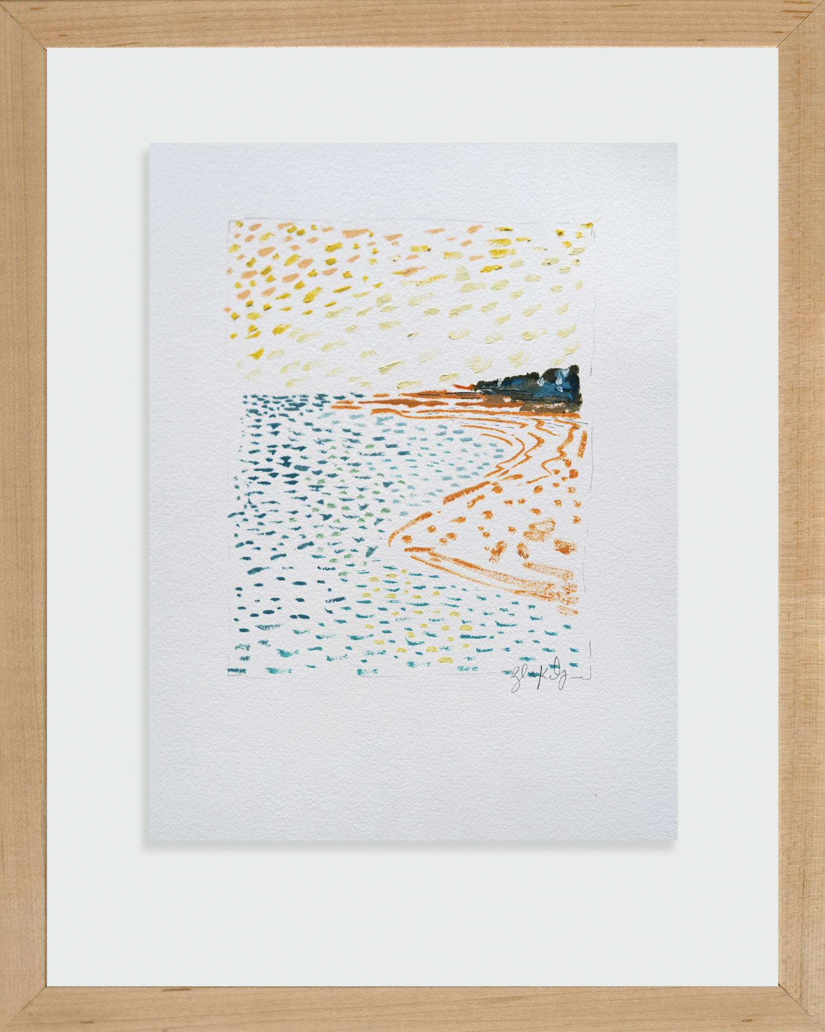 Acrylic, oil, pencil and pastel on Arches Paper with an optional White Wash Mat and Maple Wood Frame