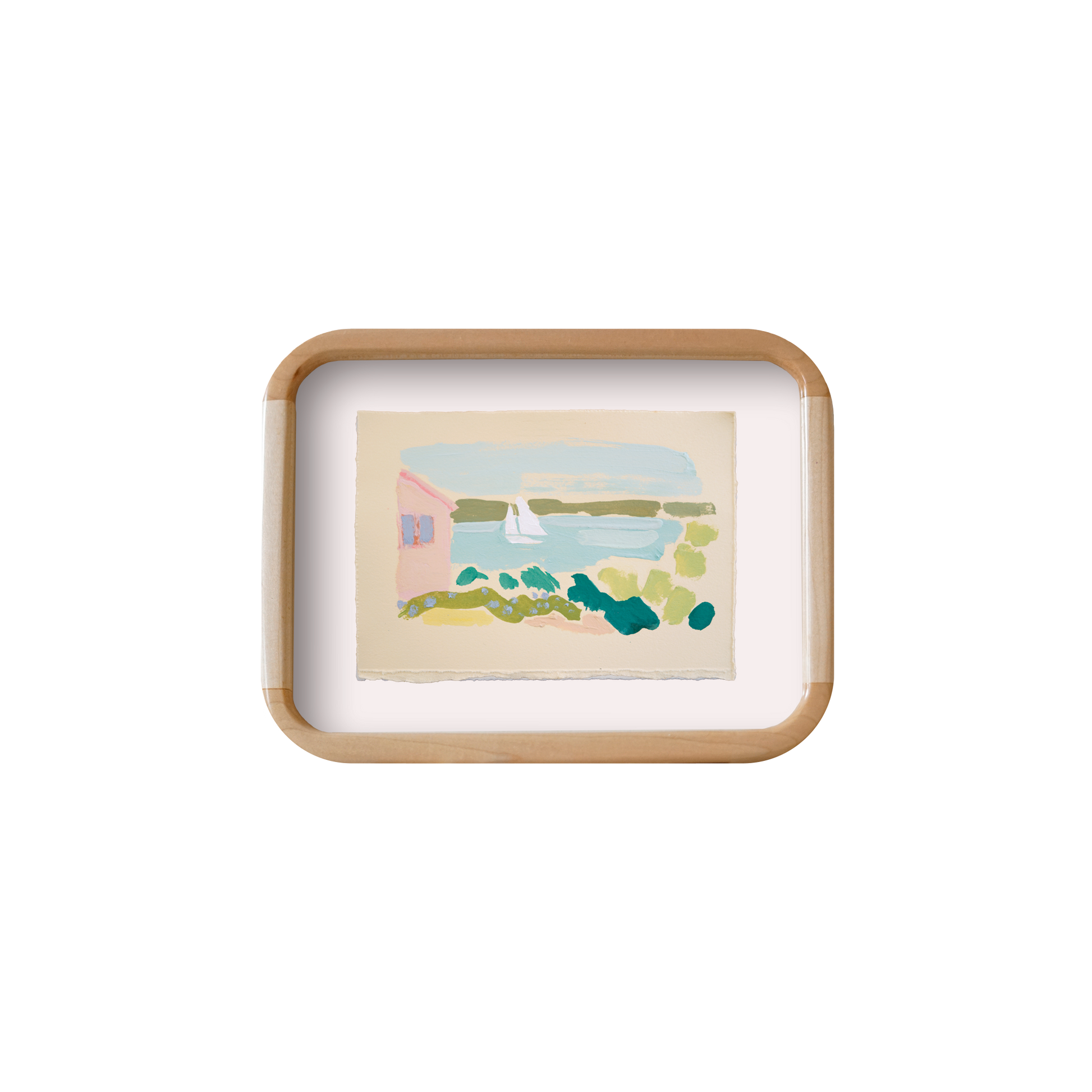 Oil on BFK Rives 280gsm paper floated in a Rounded Natural Wood Frame with Pure White mat