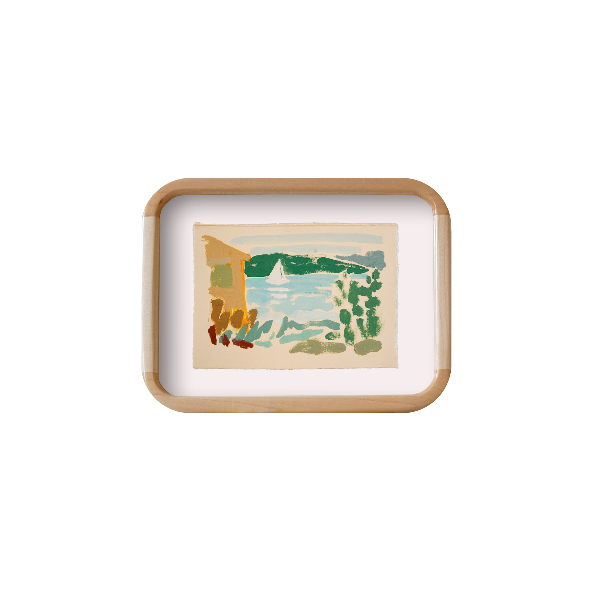 Oil on BFK Rives 280gsm paper floated in a Rounded Natural Wood Frame with Pure White mat