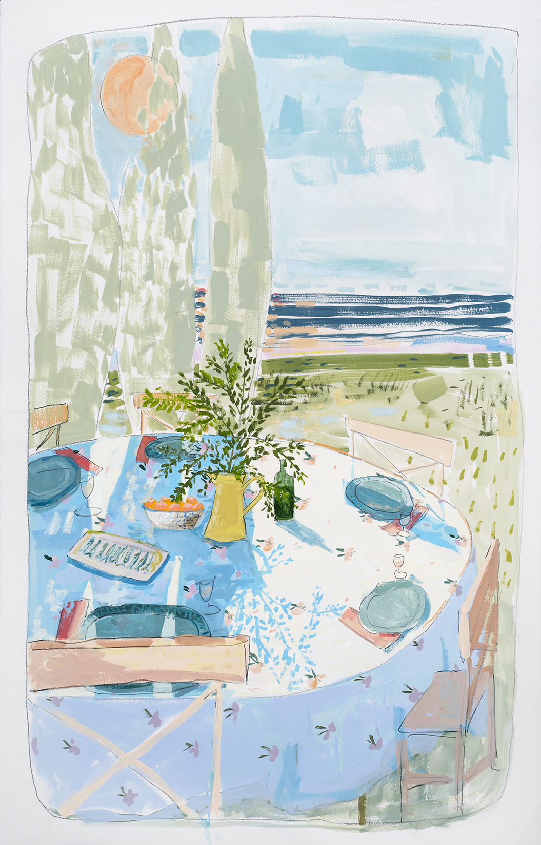 Acrylic, oil and pastel on 26x40 cotton paper with a deckled edge